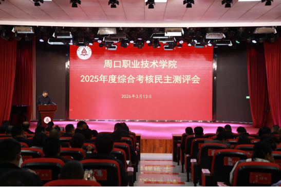 3月13日上午,学校在开元校区艺术演播厅召开2025年度综合考核民主测评会,全面总结2025年工作,并谋划2026年重点工作。党委副书记、工会主席郭汝礼主持,校领导李秀萍、王隼、于爱霞、李向东出席,校属各部门副科级及以上干部教师、特邀人大代表和政协委员参加会议。